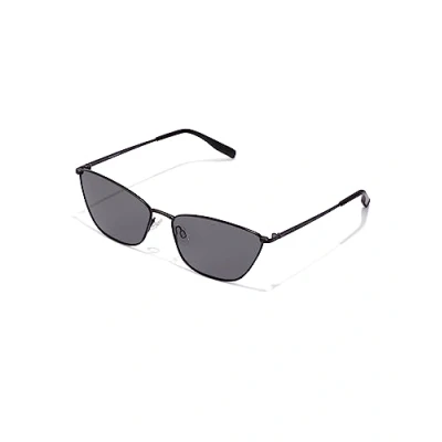 A timeless All Black model with a slim matte black metallic, cat eye frame and black Polarized sunglasseses, A simple and daring design that follows this season's maxi-minimal trend, Definitely a statement for summer Polarized sunglasses: Reduces surface reflections and eye fatigue, providing superior sharpness and contrast, Sunglasses category 3 filter, dark colouring, suitable for full sun outdoors, Absorb 82-92 Percent sunlight, Lens material: Lenses made of polarised bio tac material, 100 Percent UV protection, Lens Color: Black, Lens Appearance: Solid Frame material: Metal, Frame Color: Black, Temple Color: Black Original Hawkers product, The box includes a microfiber cover and box Female Model. Size: Front 150 mm, Temples 140 mm, Bridge 17 mm, High 41.2 mm