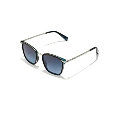 A square hybrid design with subtle nautical colours, This "soft retro" model combines a polished-silver metal frame, with rims and temple tips in transparent dark blue, and smoky-blue graduated lenses, The Hawkers logo is engraved on the right lens Sunglasses category 3 filter, dark colouring, suitable for full sun outdoors, Absorb 82-92 Percent sunlight, Lens material: TR18 lenses bearing the Eastman seal, excellent optical quality and durability,Environmentally-friendly, 100 Percent UV protection, Lens Color: Blue, Lens Appearance: Gradient Frame material: Metal, TR90, Frame Color: Blue, Silver, Temple Color: Silver Original Hawkers product, The box includes a microfiber cover and box Male Model. Size: Front 143.5 mm, Temples 145 mm, Bridge 20 mm, High 49.5 mm