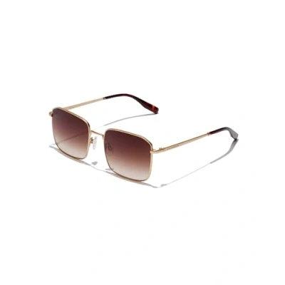 A timeless classic design with a metal frame, This square and minimalist shape with simple lines and angled details is a casual essential for any look, Available in several colours of lenses and frames with glossy and matte finishes Sunglasses category 3 filter, dark colouring, suitable for full sun outdoors, Absorb 82-92 Percent sunlight, Lens material: TR18 lenses bearing the Eastman seal, excellent optical quality and durability,Environmentally-friendly, 100 Percent UV protection, Lens Color: Brown, Lens Appearance: Gradient Frame material: Metal, Frame Color: Gold, Temple Color: Gold Original Hawkers product, The box includes a microfiber cover and box Unisex Model. Size: Front 140 mm, Temples 145 mm, Bridge 19 mm, High 47 mm