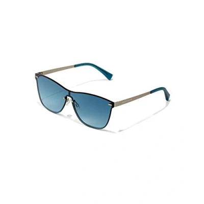 A denim-tone all-lens model with matt-finish, silver-tone metallic frame and denim coloured earpieces Sunglasses category 3 filter, dark colouring, suitable for full sun outdoors, Absorb 82-92 Percent sunlight, Lens material: Premium nylon lens, ideal for sports and performance frames due to its great strengthand light weight, 100 Percent UV protection, Lens Color: Blue, Lens Appearance: Gradient Frame material: Metal, Frame Color: Silver, Temple Color: Silver Original Hawkers product, The box includes a microfiber cover and box Unisex Model