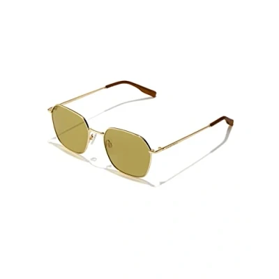 Polygonal-shaped sunglasses with high-gloss gold metal frames, Matcha-green cosmetic lenses and matching temple tips make them the perfect accessory for any outfit, both indoors and outdoors Sunglasses category 2 filter, medium-dark colouring, suitable for average brightness outdoors, Absorb 57-81 Percent sunlight, Lens material: TR18 lenses bearing the Eastman seal, excellent optical quality and durability,Environmentally-friendly, 100 Percent UV protection, Lens Color: Green, Lens Appearance: Cosmethic Frame material: Metal, Frame Color: Gold, Temple Color: Gold Original Hawkers product, The box includes a microfiber cover and box Unisex Model. Size: Front 141.5 mm, Temples 145 mm, Bridge 19 mm, High 49.2 mm