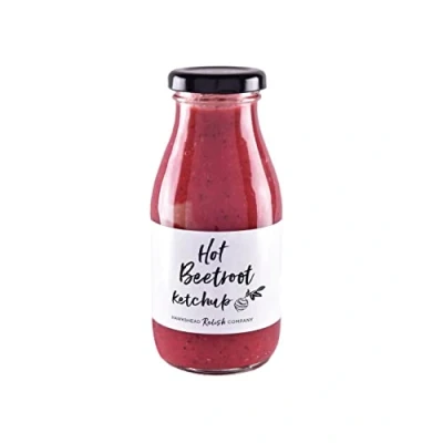 Handmade in the English Lake District Rich beetroot, horseradish and a kick of chilli gives heat and vibrant colour that certainly packs a punch This earthy ketchup is great for BBQ’s or adding to soups and stews to add a beautiful depth of flavour and colour. Equally delicious with smoked salmon or mackerel. FREE from additives, nuts & gluten