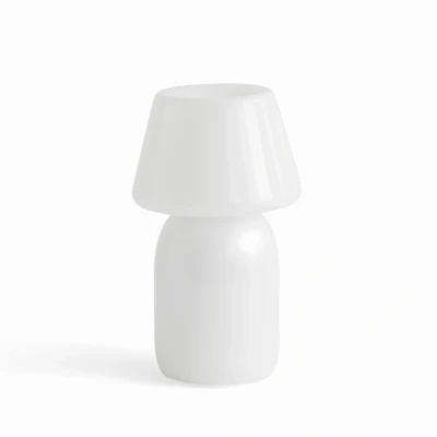 Lights.coApollo Portable LED table lamp made of opal white glass with rechargeable battery The Apollo Portable LED table lamp is a table lamp handmade from a single piece of opal glass with an integrated rechargeable battery, which not only provides atmospheric light indoors and in the garden or on the terrace, but can also create a beautiful atmosphere on outdoor tables in catering establishments. The light source and battery are concealed inside the light. The bulb illuminates the upper part of the lamp and creates a warm ambient light. The Apollo Portable LED table lamp was designed by architecture and design studio Studio 0405, a design studio that works at the interface between space and object and collaborates with other creatives such as artists, photographers and craftspeople. Nikolaj Lorentz Mentze, founder and owner of the Copenhagen-based design studio, designed the Apollo Portable table lamp for HAY.