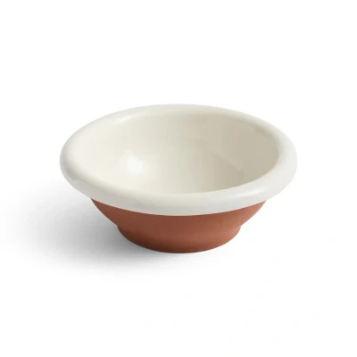 The Barro salad bowl by HAY combines timeless design with the natural aesthetics of terracotta. The harmonious combination of white glaze and warm terracotta surface adds a special touch to any table. The bowl was designed with a clear focus on high-quality materials and precision craftsmanship, making it a stylish companion for any meal.