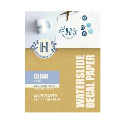 Hayes Paper, Waterslide Decal Paper Laser Clear 20 Sheets Premium Water Slide Transfer Transparent Printable Decals A4 Size