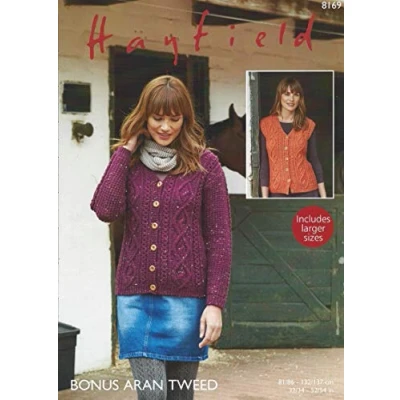 Hayfield Bonus Aran Tweed Knitting Pattern 8169 Cardigan & Waistcoat