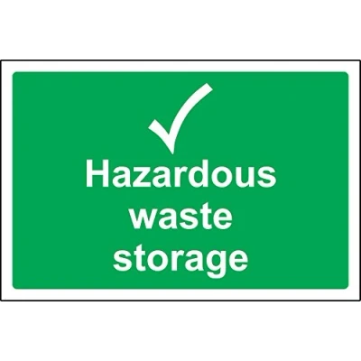 Hazardous waste storage Safety sign Self adhesive sticker 200mm x 150mm Remove backing film and apply to dry, smooth, oil free surface. Digitally printed and laminated for extra durability, Manufacturer: KPCM Display