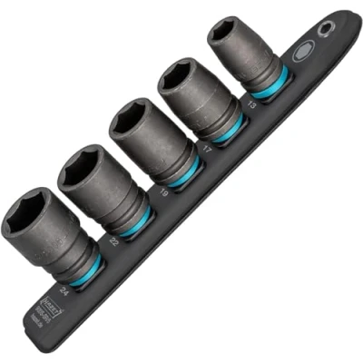 Practical: the magnetic underside of the socket spanner set ensures grip on all ferrous surfaces, e.g. on workshop trolleys, tool walls, machines, lifting platforms and in metal drawers High quality: the short rail with robust metal eyelet impresses with its durable and strong twist lock, thus ensures a secure fit, instant access and is easy to clean Simple: the 5 individual sockets are securely fixed in a locked state: for removal, the socket spanner insert simply needs to be turned to the left Made in Germany: Hazet is one of the leading manufacturers of quality tools for professional use and has more than 150 years of experience in development and production Box contents: 1 x Hazet 900S-SR/5 smart rail with 5 different sockets: s13, s17, s19, s22, s24 | 1/2 inch impact machine screwdriver insert, short, dimensions of terminal strip: 245 x 37.4 mm