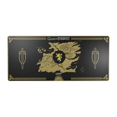 Lannister house design: xxl mouse pad featuring a detailed westeros map in gold on a black background with game of thrones emblems Extra-large format: 90×40 cm surface offers ample space for mouse and keyboard placement Smooth control surface: micro-textured top layer ensures accurate tracking and consistent glide for all mouse types Secure & comfortable: soft neoprene construction with anti-slip latex backing provides wrist support and stability Easy to clean: washable surface allows for effortless maintenance and long-lasting durability, Platforms: Mac