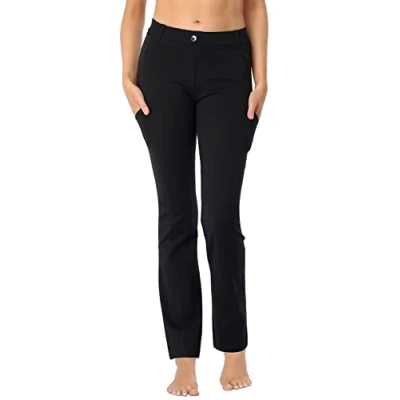 HDE Yoga Dress Pants for Women Straight Leg Pull On with 8 Pockets, Black, L Lange
