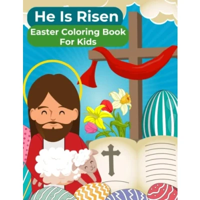 He Is Risen! Easter Coloring Book: Religious Gift For Kids Ages 5 10 Christian Bible Page With Cross And Resurrection Story Of Jesus In Big Eggs To