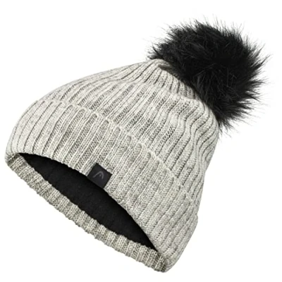 Single Layer fold over beanie with circular knit Supersoft melange yarn Fake Fur pompom Inner side completely lined with soft fleece