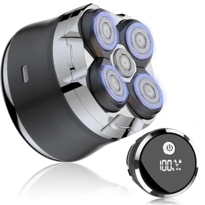 Head Shavers for Men: Mens head shaver is designed for men who like to shave their heads but are tired of using electric razors or blades. mens head shaver provides a close and comfortable shave, efficient floating razor heads fit the contours of the head, face, neck and even chin for a quick and effective shave. save time shaving and enhance your daily grooming experience Removable Magnetic Head: Mens head shavers features a magnetic structure that makes it effortless to remove the entire head in one go. The head shavers is also waterproof, allowing for easy cleaning under tap water and easy removal of residual hairs, making maintenance a breeze Sharp and Double Precision Blade: Facial trimmers feature double durable blades for accurate shaving of short and long hair, the blades are made of ultra-thin alloy material to provide a sharper and safer shave. Floating heads add a larger shaving area and reduce skin irritation. giving you easy access to all areas of your head and face for all your shaving and grooming needs for a closer, smoother shaving experience IPX6 Waterproof Wet & Dry Shaving: Head shaver for Men has IPX6 waterproof design, the shaver not only supports dry shaving, but also wet shaving with shaving creams, foams and more. Never worry about using it in the bathroom again, bald head shaver can complete the trimming task efficiently. This head shavers for bald men is perfect for boyfriend, husband or father USB Quick Charge & LED Display:Our bald head shavers for men are equipped with a clear LED display that shows the remaining charge in real time, making it easy to keep track of when it needs to be recharged. Enjoy up to 120 minutes of cordless shaving on a single charge for long-term use.