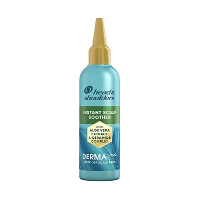 Head&Shoulders Derma X Pro Scalp Soother Treatment 145ml instantly soothes itchy, dry scalps caused by dandruff using aloe vera, piroctone olamine, and ceramide. Its rinse-off formula and nozzle applicator deliver targeted moisture for quick, effective relief—ideal after using the matching shampoo and conditioner.