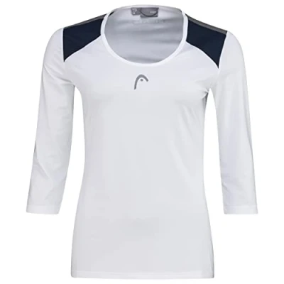 HEAD Women's Club 22 Tech 3/4 Length Shirt, White/Dress Blue, XS