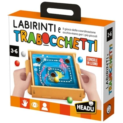 The game of hand-eye coordination DEVELOPED SKILLS: Developing motor coordination; Training manual skills; Early lateralization concepts; Visual memory CONTENT: 6 bases-maze; 6 wooden balls OTHER PLUS: Tact and manual skills ORIGIN: Made in Italy, Manufacturer: Headu srl