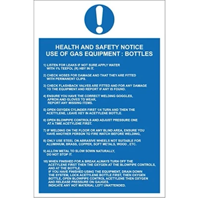 Health and Safety Notice use of Gas Equipment Bottles Sign Self Adhesive Sticker 300mm x 200mm