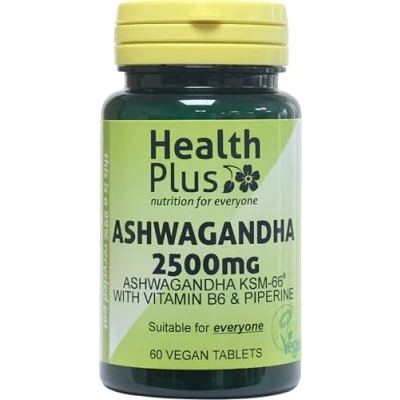 Health Plus Ashwagandha (KSM 66) 2500mg : Mood & Emotional Balance Plant Supplement 60 Tablets, in a Planet Friendly 99% Recycled Pot