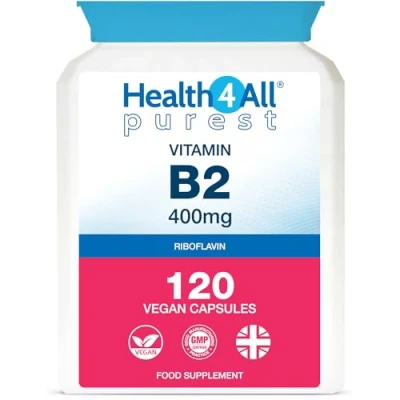 Health4All Vitamin B2 Riboflavin 400mg Migraine Support 120 Capsules (4 Months Supply) Vegan, no additives, High Strength Supplement