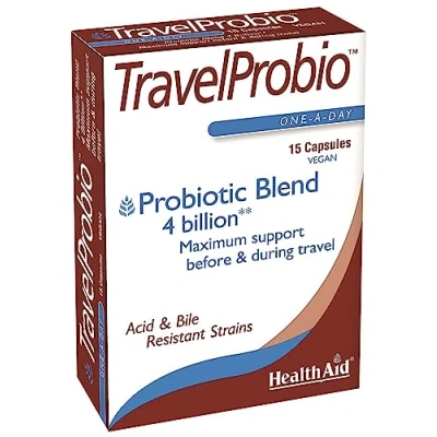 Help build the body’s resistance before and during HealthAid uses special acid & bile resistant strains Does not need to be refrigerated Contained in a special protective blister pack to keep it at maximum strength while you are travelling Suitable for vegetarian and vegans
