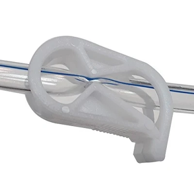 Flexible white virgin PVC pinch clamp. Can be pushed over most enema hose sizes. Easy for single hand operation - press to stop flow & release to start the flow Very economical and competitive price