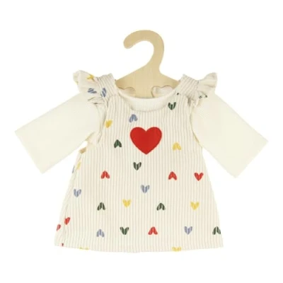 2-piece doll outfit in beige, consisting of a doll strap dress with colourful heart pattern and a matching shirt Thanks to the @@@viHoVwAse6xLVW923xMsvxb6pkCsG+LI@@@ fasteners, the garments are easy to put on and take off, which gives children a lot of fun while playing The set fits baby, soft and rag dolls as well as plush toys of size 35 - 45 cm, the set is delivered on a wooden hanger As a traditional company, Heless pays great attention to high quality and, of course, compliance with all legal safety requirements. Heless Quality toys are developed with attention to design and detail. All products support creative role play and stimulate game imagination. Playing with dolls promotes children's empathy and fine motor skills., Manufacturer: Heless GmbH