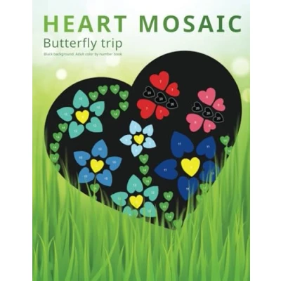 HEART MOSAIC. Butterfly trip.: Black background. Adult Color by number book. Activity Coloring Book for Adults Relaxation and Stress Relief.: 2 (HEART MOSAIC SERIES)