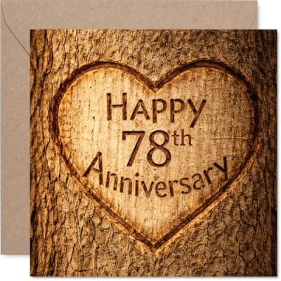 Heartfelt 78th Anniversary Card Rustic Charm Meets Romance Carved Heart on Wood inspired Design Captures a Lifetime of Love 145mm Square, Envelope Included