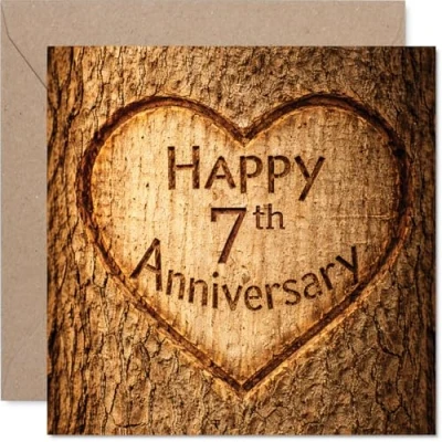Captures a heartfelt moment with a carved heart motif set against a rustic wooden background, adding warmth and sincerity to your anniversary wishes Features a textured wood-effect design with a charming heart at the centre, making it ideal for marking seven years together in style. Recyclable and printed in UK for a considerate choice Made from quality gloss single sided board with uncoated inside-no smudging when writing inside. Printed in the UK using recyclable, FSC-certified card Blank inside, giving you plenty of space for your own personal message. Comes with a matching envelope for an easy, polished finish. The 145mm Square format is convenient to display or post Crafted with care for that special milestone, this card suits anyone celebrating a 7th anniversary-ideal for couples, friends, or even colleagues