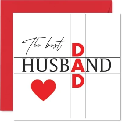 Shares a truly heartfelt message, with 'The best HUSBAND DAD' in bold print and a bright red love heart at the centre of the design. Anniversary card for Husband with a light-hearted design style Stylish typography and a classic colour palette make this card stand out - a thoughtful way to mark an anniversary or Father's Day. Recyclable and printed in UK for a considerate choice Printed on gloss single sided board with an uncoated inside for easy writing. No smudging when writing inside. Printed on 360 micron stock for a confident, premium feel Blank inside so you can add your own personal touch. Includes a matching envelope for that finishing flourish. The 145mm Square format is convenient to display or post Proudly designed and printed in the UK on recyclable, FSC-certified - created to bring a smile to someone special. A thoughtful choice that helps you send smiles and warm wishes