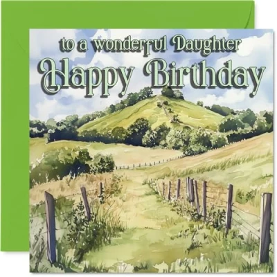 Heartfelt Birthday Card for Daughter A Breath of Fresh Air Serene Rolling Hills and Blue Sky Landscape Captures Wishes with Warmth 145mm Square, Envelope Included