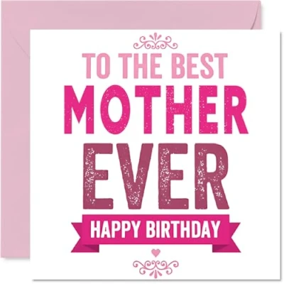 Radiates affection with cheerful 'TO THE BEST MOTHER EVER' in bold pink, guaranteed to put a smile on Mum's face. Birthday card for Mother with a light-hearted design style Features an uplifting, contemporary layout with large playful lettering and a vibrant pink and white motif for a modern touch. Recyclable; printed in UK for a considerate choice Printed on quality gloss single sided board with an uncoated inside-no smudging when writing inside. Made with FSC board and fully recyclable Blank inside, so you can craft your own personal birthday message. Includes a matching envelope for easy gifting. The 145mm Square format is convenient to display or post Designed and printed in the UK, this card is all about heartfelt moments and thoughtful touches for someone truly special. A thoughtful choice that helps you send smiles and warm wishes
