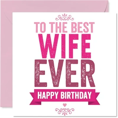 A touching way to show your wife just how much she means, with a striking 'TO THE BEST WIFE EVER' message in playful pink and white. Birthday card for Wife with a light-hearted design style Features cheerful, bold typography that bursts with appreciation-perfect for making her birthday feel extra special. Recyclable; printed in UK for a considerate choice Printed on premium gloss single sided board with a smooth uncoated inside. No smudging when writing inside, so your personal words stay crisp Blank inside for your own thoughtful message, with a matching envelope included to finish the presentation. The 145mm Square format is convenient to display or post Proudly made in the UK from FSC-certified and fully recyclable-designed to make her smile and feel properly loved. Printed in the UK. A thoughtful choice that helps you send smiles and warm wishes