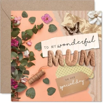 Touches the heart with its loving message and delicate butterfly perched amongst the gentle florals, perfect for showing. Mum she's cherished Features a graceful design with pretty flowers and a butterfly. all in a soothing palette of pink. green, and beige that stands out on her big day Printed on quality gloss single sided board with an uncoated inside - no smudging when writing inside and fully recyclable for peace of mind Blank inside, so you can add your own personal message. Comes complete with a matching envelope for effortless gifting. The 145mm Square format is convenient to display or post Thoughtfully designed and printed in the UK using FSC-certified, this card is made to bring a smile and last as a keepsake. A thoughtful choice that helps you send smiles and warm wishes