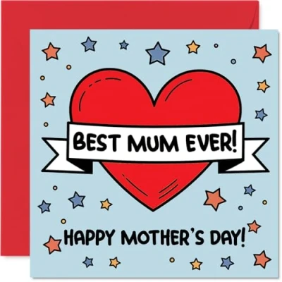 Packed with warmth, this card's big red heart and lively stars shout out appreciation in a joyful way-just what you want to say on Mother's Day The eye-catching motif features a vivid red heart surrounded by colourful stars, making it a standout choice for showing heartfelt thanks. Recyclable and printed in UK for a considerate choice Premium gloss single sided board gives a quality feel, with an uncoated inside for easy writing-no smudging when writing inside. Printed on 360 micron stock for a confident, premium feel Blank inside, so you can add your own personal touch. Includes a matching envelope for a lovely finishing touch. The 145mm Square format is convenient to display or post Designed and printed in the UK using FSC-certified -recyclable too, so you can feel good about your choice. A thoughtful choice that helps you send smiles and warm wishes