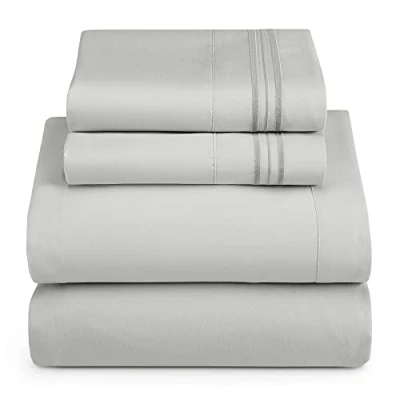 Hearth & Harbor RV Short Queen Size Sheets 4 Piece Bed Sheet Set, Hotel Luxury Double Brushed Extra Soft Bedding Pillowcases, Queen, Silver Grey