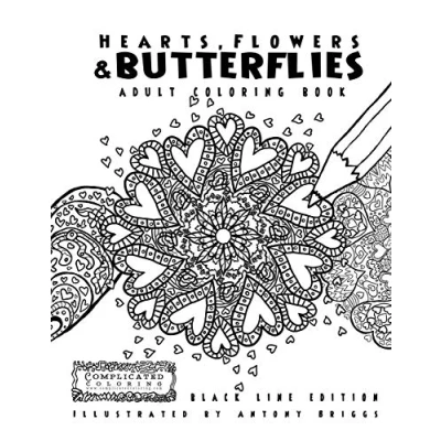 Hearts, Flowers, and Butterflies Adult Coloring Book: Black Line Edition (Complicated Coloring)