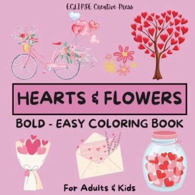 HEARTS & FLOWERS: BOLD EASY Coloring Book for ADULTS KIDS, 52 Designs, Perfect Relaxation Stress Relief (BOLD Books)