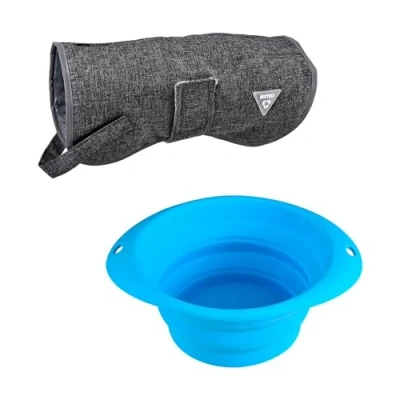 Hearts&Homies 25cm Black Coat Set + Foldable Round Pet Bowl XS 25cm Thermal Pet Coat It can protect pets during outdoor activities, and it is easy to put on and take off. Machine washable. Colour: black Round collapsible bowl made of silicone. Safe material, portable and convenient, with a large capacity.