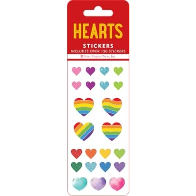 Love hearts? This sticker sheet set is for you! More than 120 multi-colored heart designs include rainbow hearts, striped hearts, heart-shaped floral borders, patterned hearts, jewel-look hearts, and more. Fun and decorative designs add personality wherever they stick! Set contains over 120 stickers! Premium stickers have a high-quality finish. Stickers peel off backing sheets easily. Adhesive adheres securely to paper and other surfaces. Set comes with 6 sheets of stickers. Each sheet measures 2-1/2'' x 7-1/8''. Sticker set comes in a protective polybag.