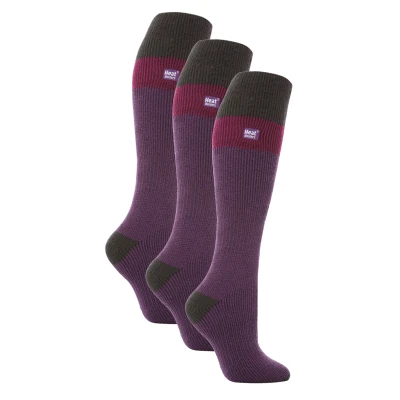 HEAT HOLDERS 3 Pack Ladies Thermal Knee High Ski Socks WoMens Thick Winter 2.3 TOG Long Skiing (4 8, Purple/Charcoal)