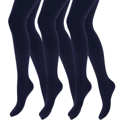 HEAT HOLDERS 3 Pair Multipack Girls Thermal Tights for Winter Kids Fleece Insulated Opaque (9 10 Years, Navy)