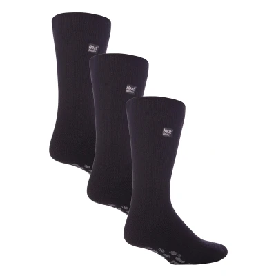 HEAT HOLDERS 3 Pair Multipack Mens Slipper Socks with Grips for Winter Thick Indoor Non Slip Thermal (6 11, Black/Grey)