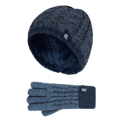 HEAT HOLDERS Boys Kids Cable Knit Warm Fleece Lined Thermal Winter Hat and Gloves Set (7 10 Years, DN1P7)
