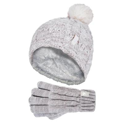 Heat Holders Girls Bobble Pom Hat and Gloves Set