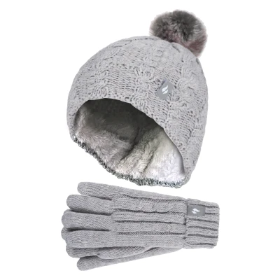Heat Holders Girls Bobble Pom Hat and Gloves Set