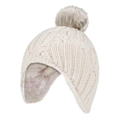 HEAT HOLDERS Girls Cable Knitted Beanie Hat with Pom Bobble for Winter Warm Thermal Insulated (3 6 Years, Buttercream)