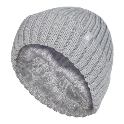 HEAT HOLDERS Girls Thick Chunky Ribbed Beanie Hat for Winter (7 10 Years, Cloud Grey)