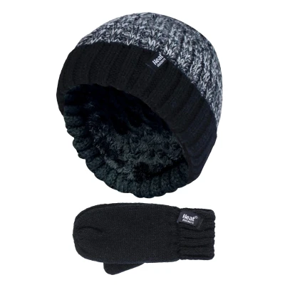 HEAT HOLDERS Kids Boys Winter Knitted Thermal Fleece Lined Cuffed Beanie Hat and Mittens Set (3 6 Years, BTO1P6)
