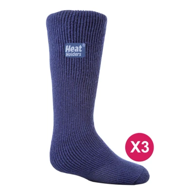 3 Pack Kids Heat Holders SocksHeat Holders Childrens Original Socks provide unbeatable warmth for your kids feet and are an average of seven times warmer than normal cotton socks. Perfect for when they are playing outdoors for hours on end, our socks are snug and cosy as well as being incredibly warm!With Kids being as active as they are they’ll need plenty of socks to keep them going which is why these come in a 3 pack pair! The inside of each sock has been intensively brushed that not only feels sensationally soft but also traps warm air close to the skin keeping their feet warmer for longer, especially if they’re playing out in the snow.Thick, chunky and with a massive tog rating of 2.34, Heat Holders are made from a specially developed heavy bulk yarn which has extreme thermal qualities. With long pile cushioning, these thermal socks will help keep feet fully comfortable and supported.These thermal socks have a long looped thermal pile, Innovative knitting technology produces our unique, extra long looped pile to hold in more warm air, increasing the thermal tog rating!They come in 8 different colours and available in 2 Kids sizes: 9-1 UK & 2-5 UK. They’re made from 91% Acrylic, 5% Polyamide, 3% Polyester, 1% Elastane and are machine washable.Extra Product DetailsKids Original Heat HoldersChunky Thermal SocksSuper Thick & Warm3 Pair PackSoft Brushed InnerLooped Thermal Pile8 Colours AvailableX7 Warmer Than Cotton SocksA 2.34 Tog Rating2 Size OptionsMachine Washable